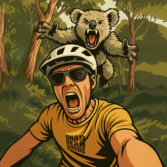 Through GNARBEAR SHREDS, we’ve bottled up his wild energy and plastered it across tees, prints, and trail-stained dreams. This isn’t mass-produced fashion fluff - it’s MTB streetwear with a bite (and a little out there imagination). Designed for the riders who laugh at crashes, chase sunsets, and believe a good ride should leave you filthy, smiling, and slightly broken.