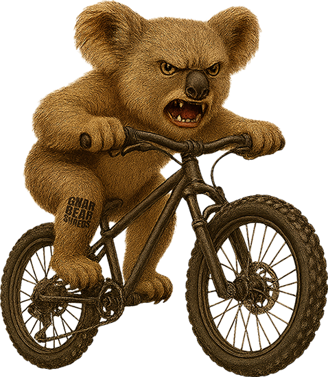 Gnarbear/Gnarly: Aussie slang borrowed from surf, skate and MTB culture, meaning something wild, savage, epic, or just plain off-the-chain.