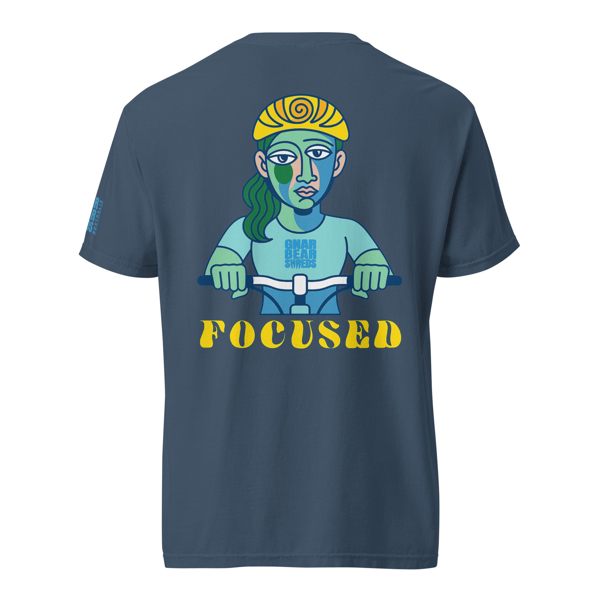 DESIGN EPIPHANY: Her eyes don't quite agree, her face bends around thought, and reality seems to tilt - just like the trail ahead. Focused isn't about seeing straight. It's about sensing the line before it forms, trusting instincts over eyesight. Inspired by Picasso, this design captures that strange clarity riders know well - when time stretches, noise vanishes, and your body moves before your brain catches up. She might look scattered, but trust us - she knows exactly where she’s going... Probably.