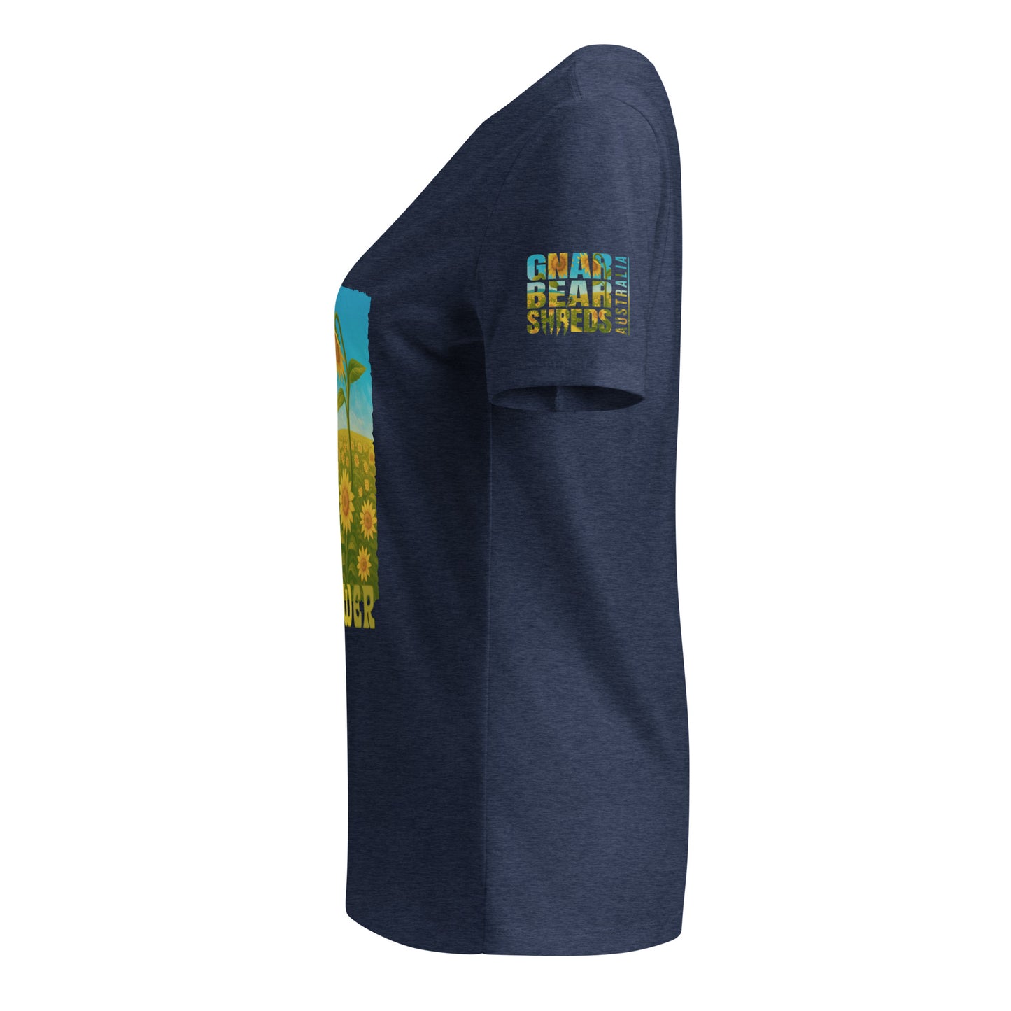 DESIGN EPIPHANY: She carves through sunflower dreams on knobby tires, fierce and free. Soft petals meet hard trail, grace meets grit - because some wildflowers don’t bloom, they shred.